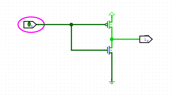非门是通过一个pmos和一个nmos组成的,输入是低电平时pmos中的Vs - Vg为较大值使电源和输出导通。当输入是高电平pmos不满足导通的条件,nmos满足。