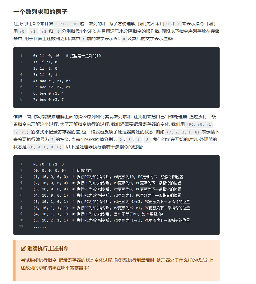 执行到最后 处理器处于一个死循环,不断执行指令七的状态,数列求和的结果存在r2。r0用来存储循环次数,r1用于计数,r2用于存放数列求和的结果,r3用于存放计数时的步进。