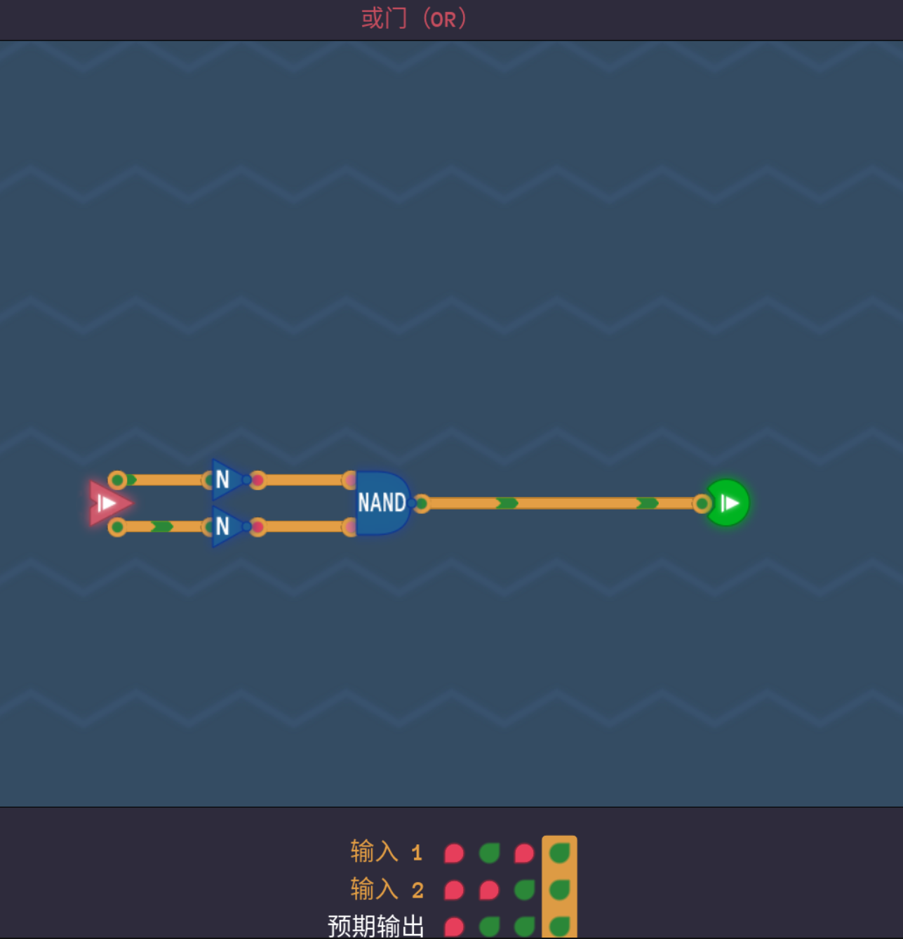 用之前与非门构建非门的思路来替代非门,三个与非门构建一个或门